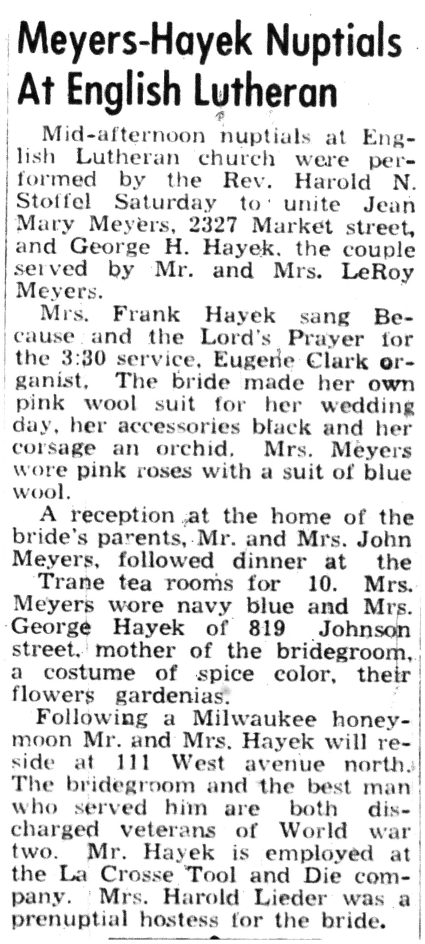 | 1945-11-26 | La Crosse Tribune p8 | |