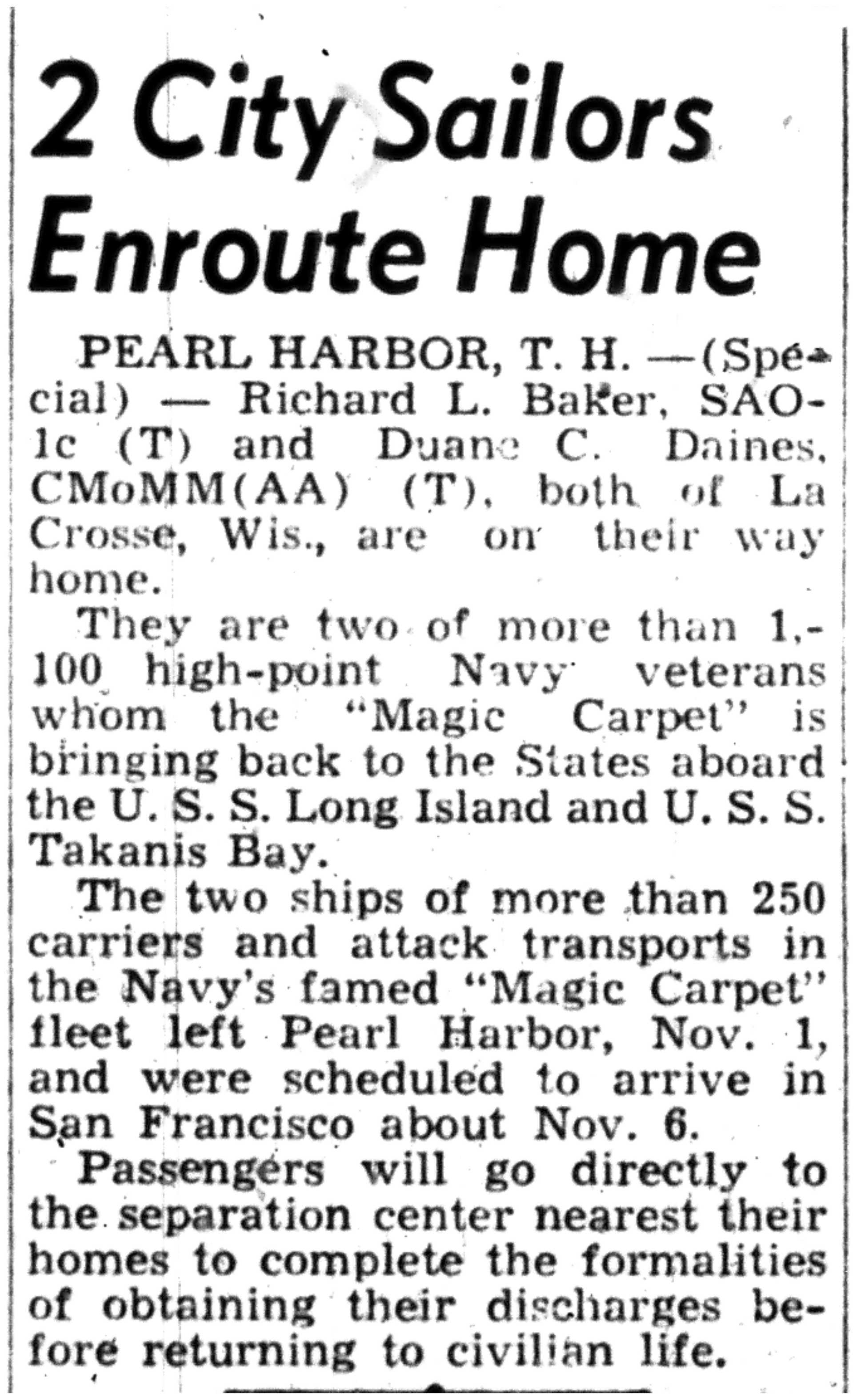 | 1945-11-14 | La Crosse Tribune p2 | |