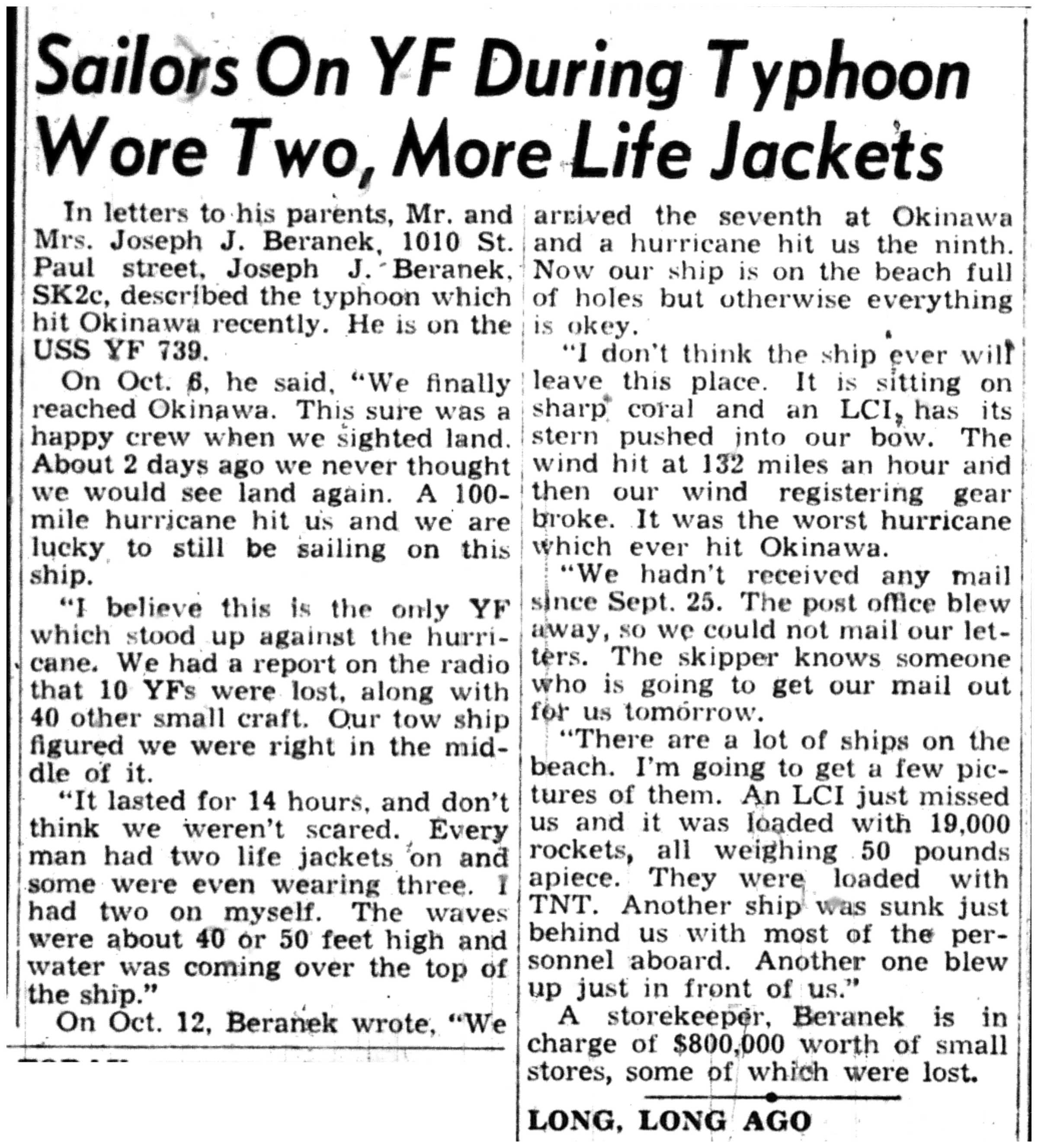 | 1945-11-8 | Non-Pareil Journal p2 | |
