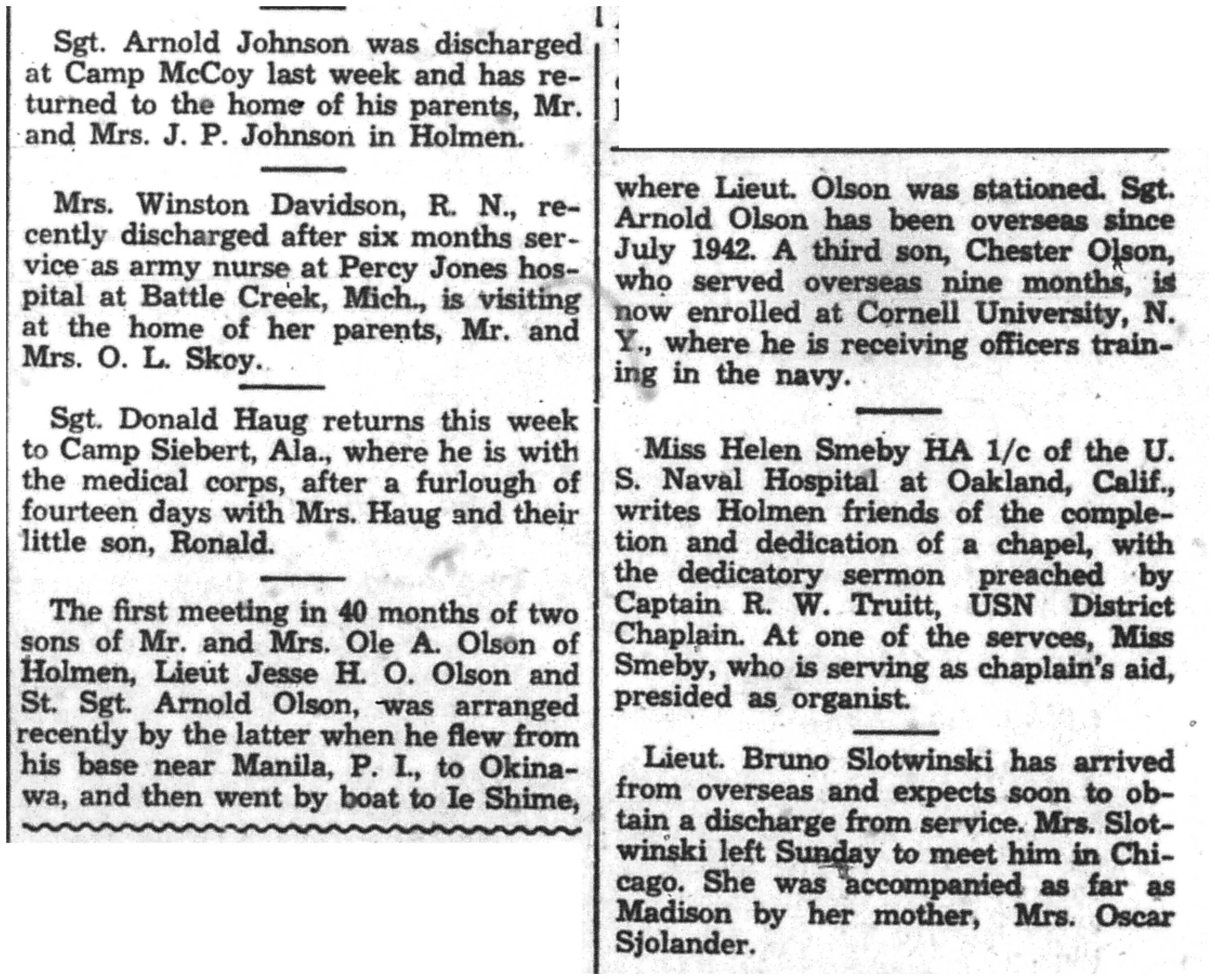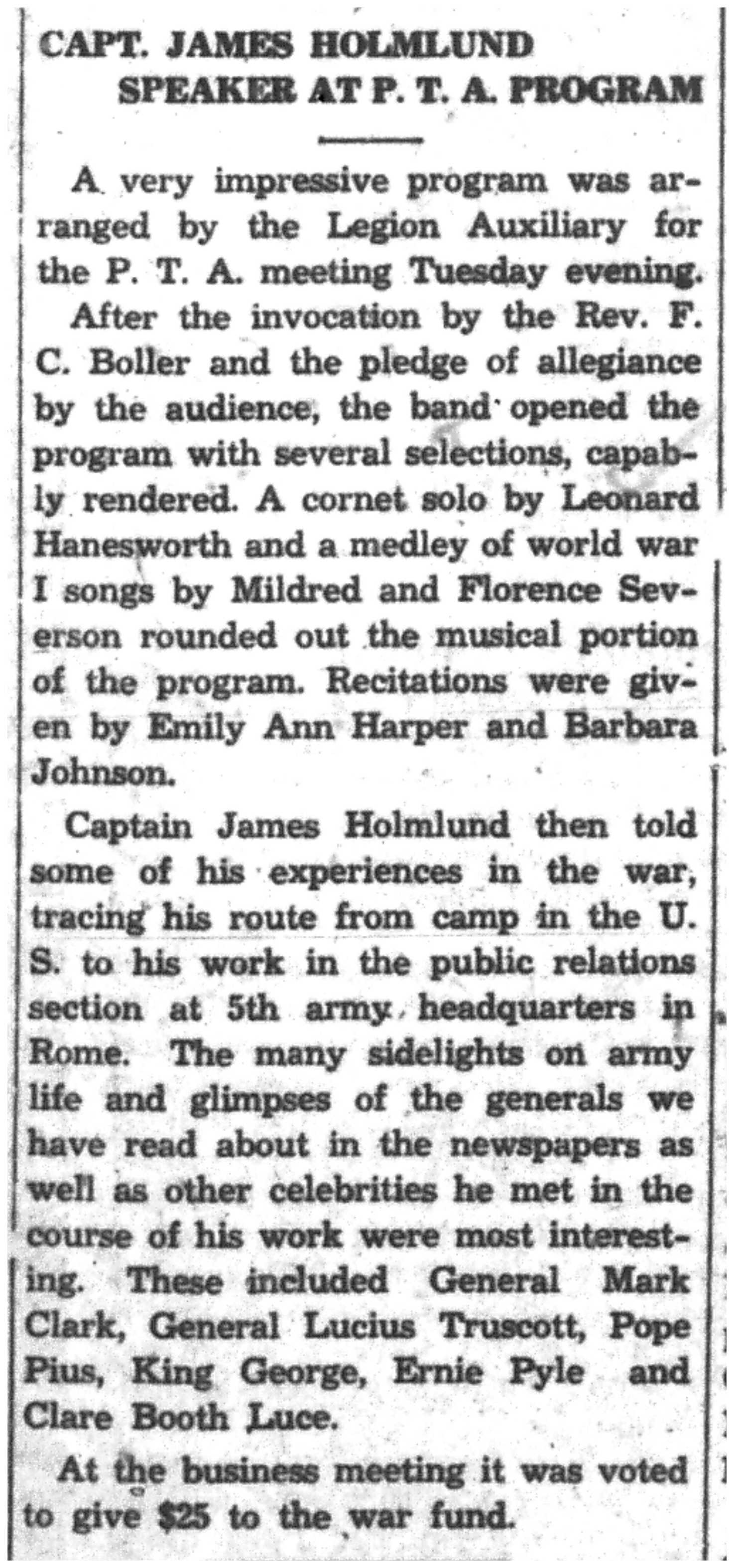 | 1945-11-11 | La Crosse Tribune p10 | |