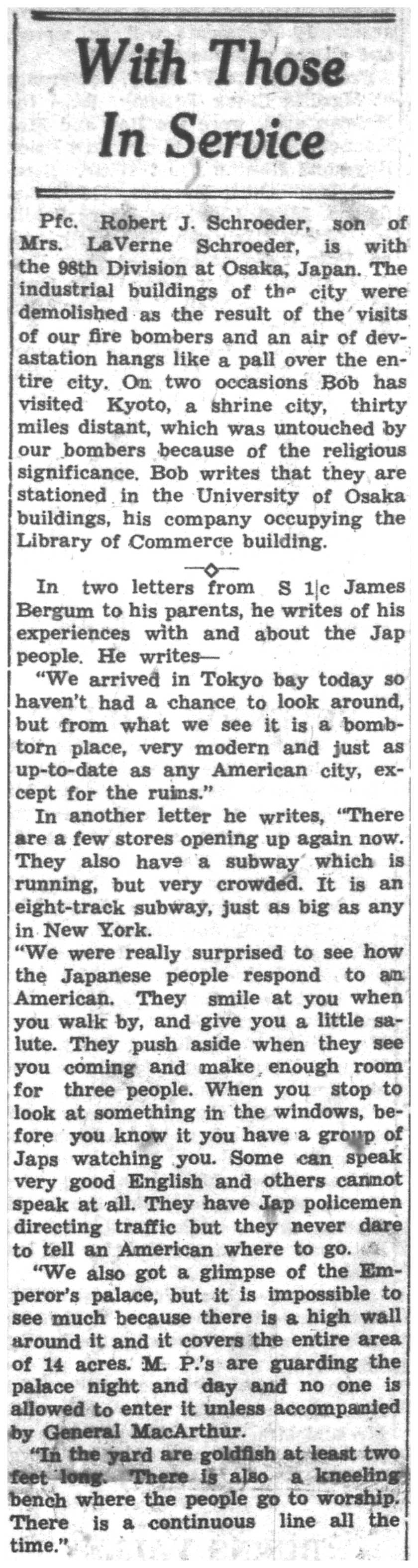 Continue browsing --> In the Service: December 1945