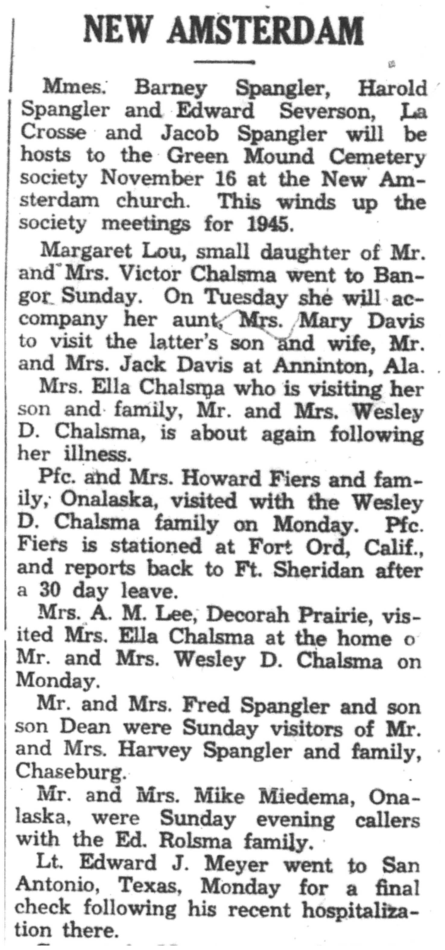 | 1945-11-8 | La Crosse County Record p5 | |