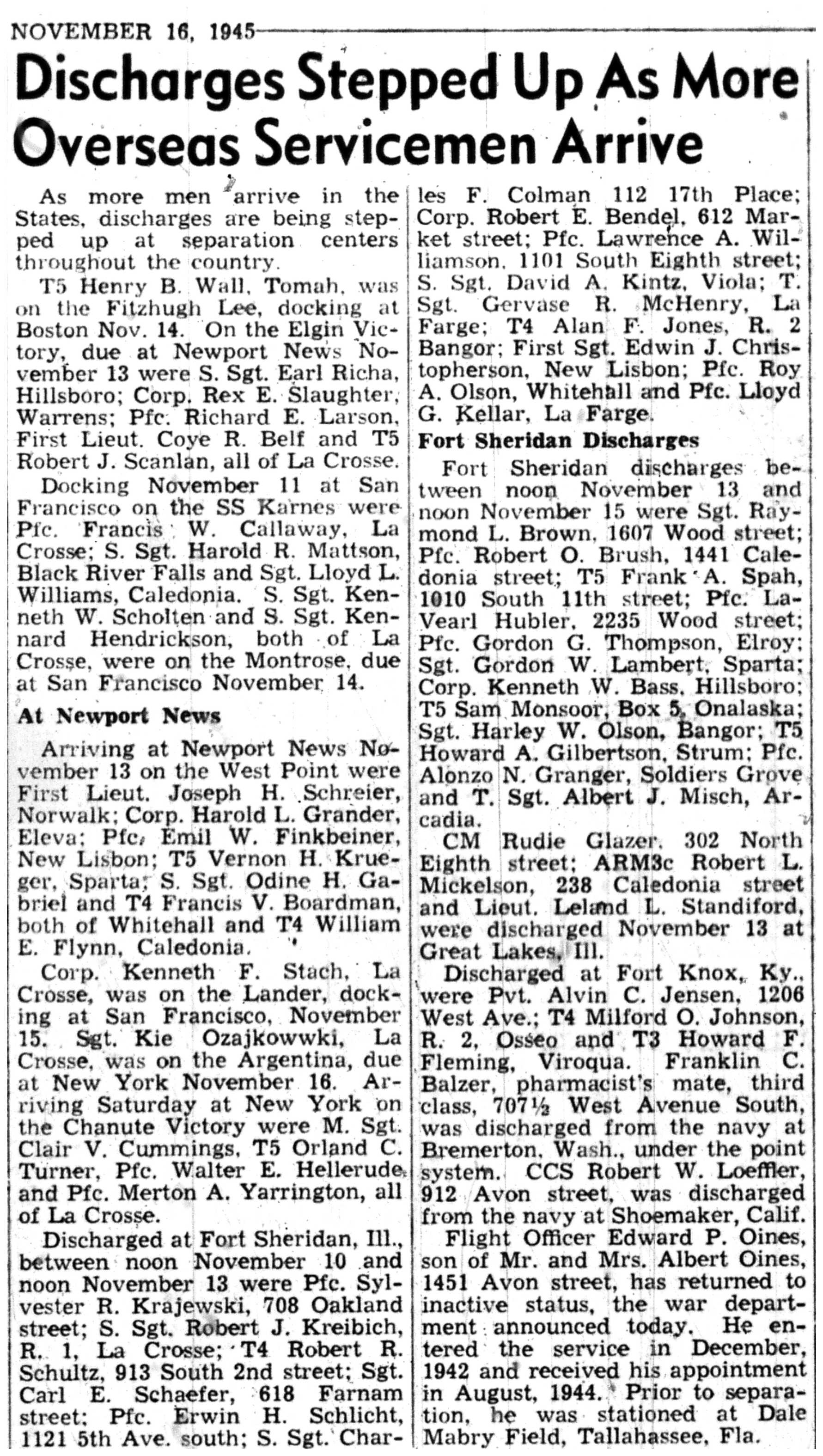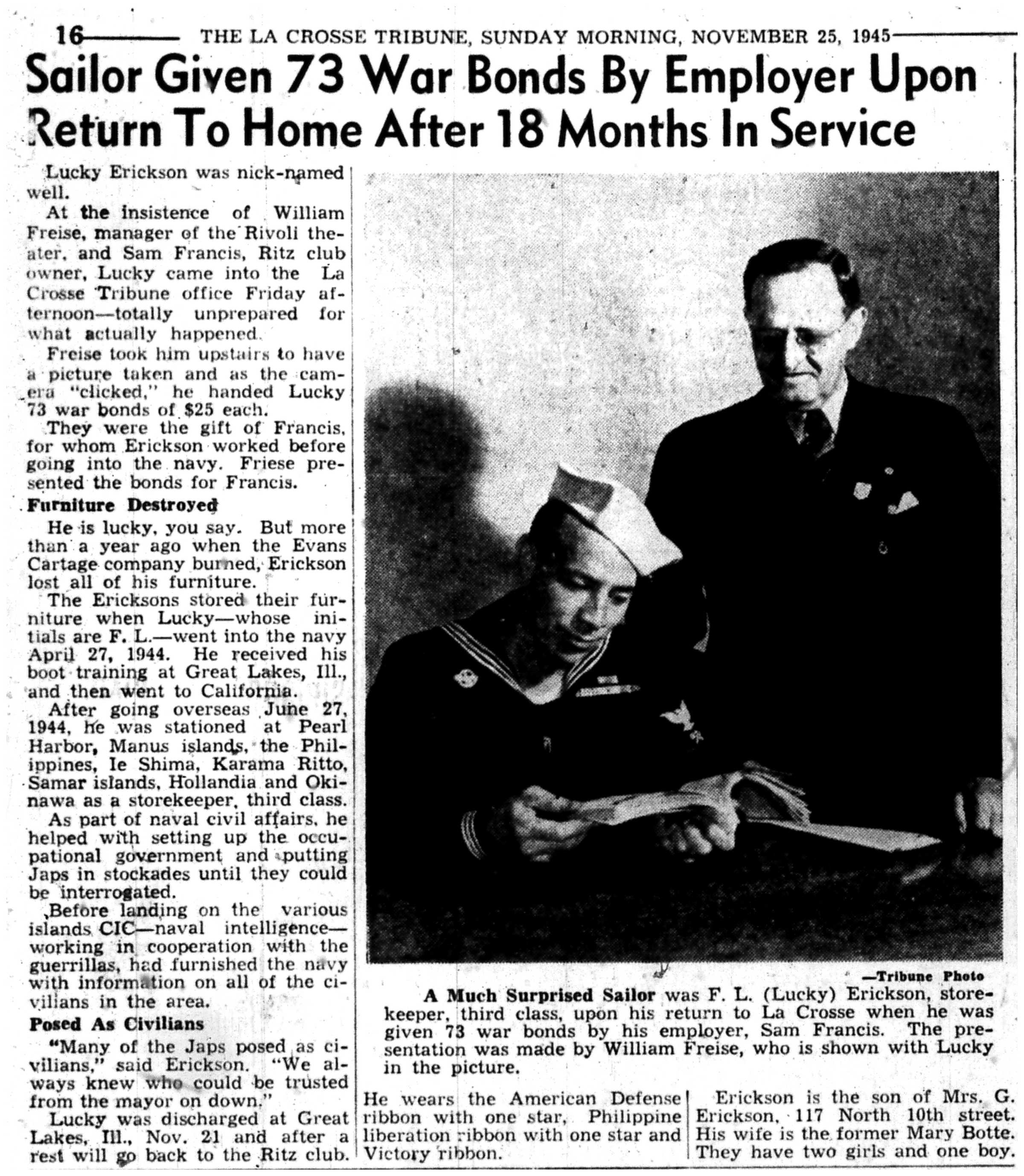 | 1945-11-16 | La Crosse Tribune p2 |