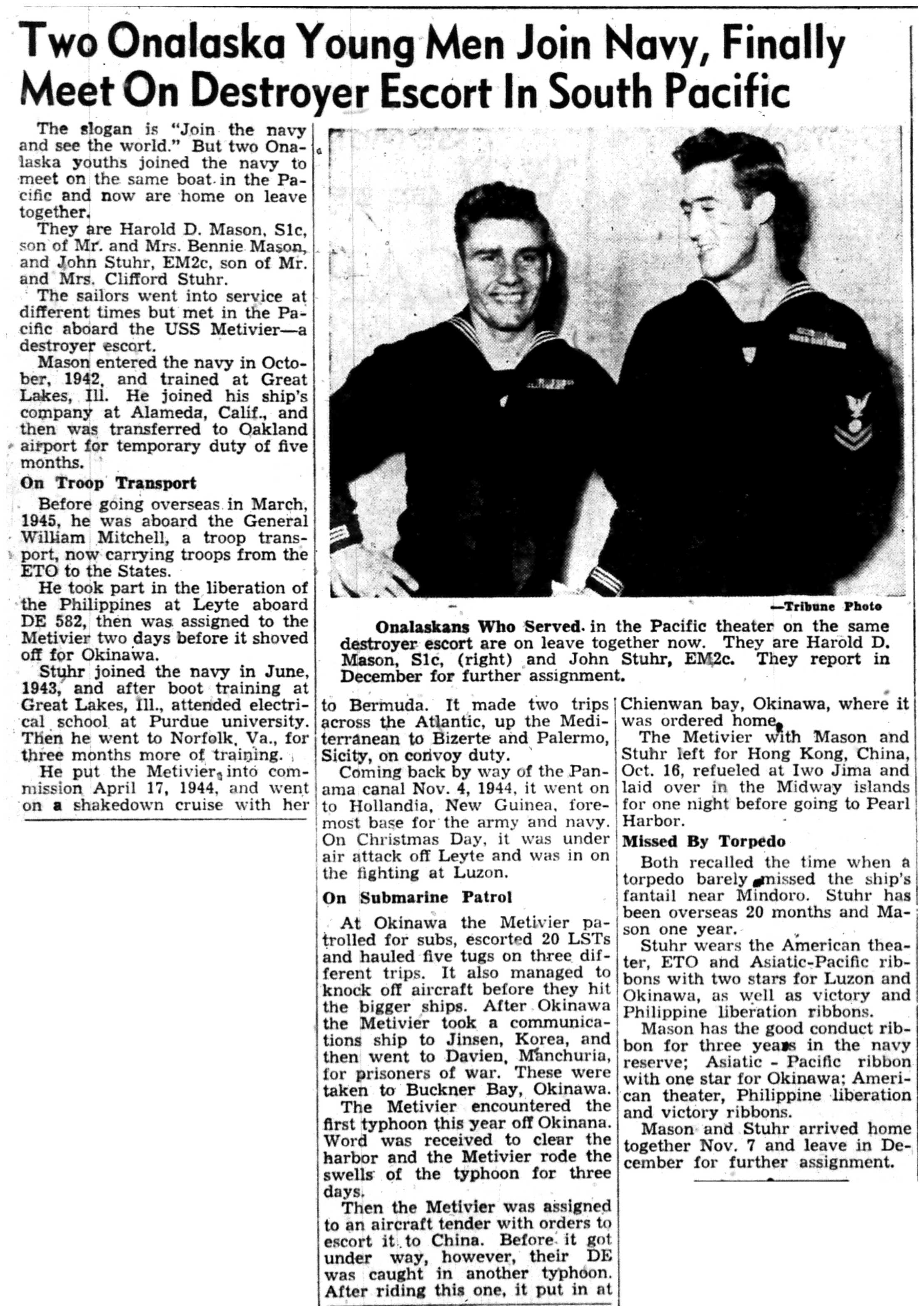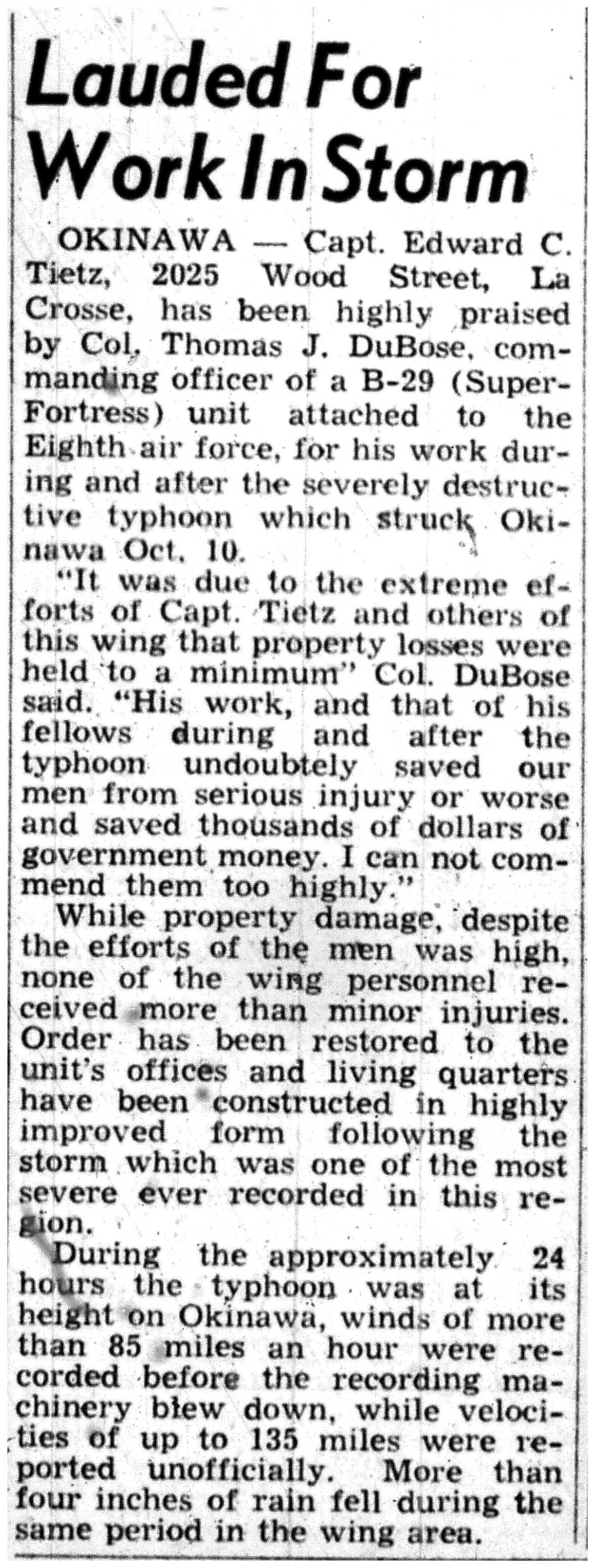 | 1945-11-17 | La Crosse Tribune p2 | |