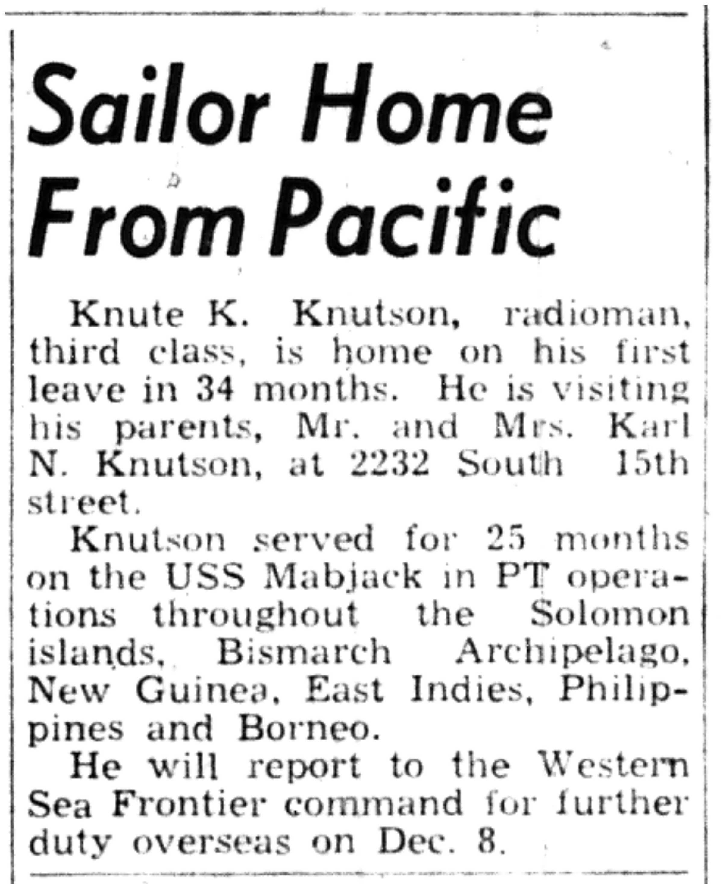 | 1945-11-8 | Non-Pareil Journal p5 | |