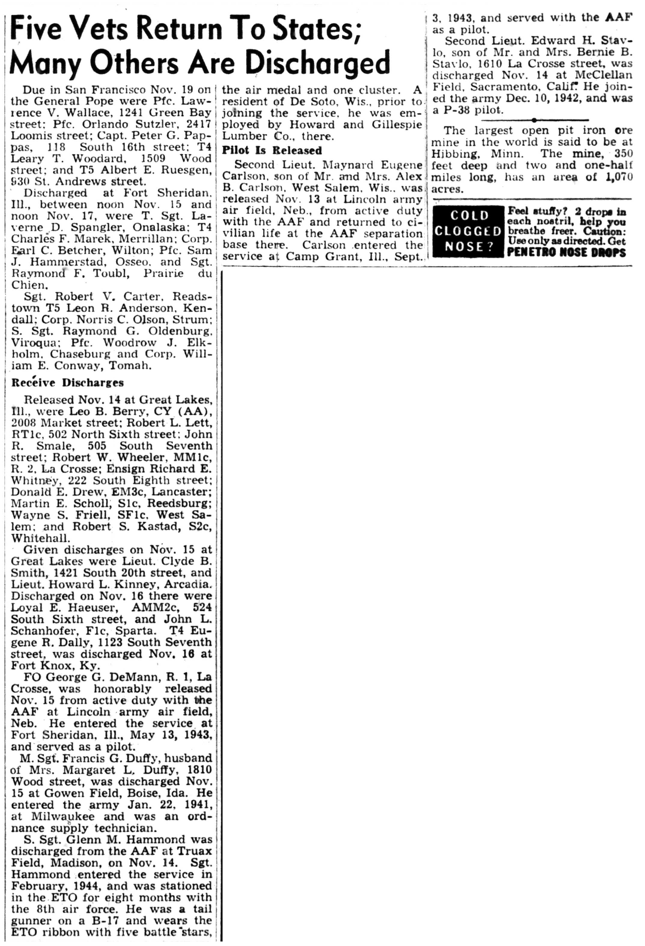 | 1945-11-15 | La Crosse Tribune p8 | |