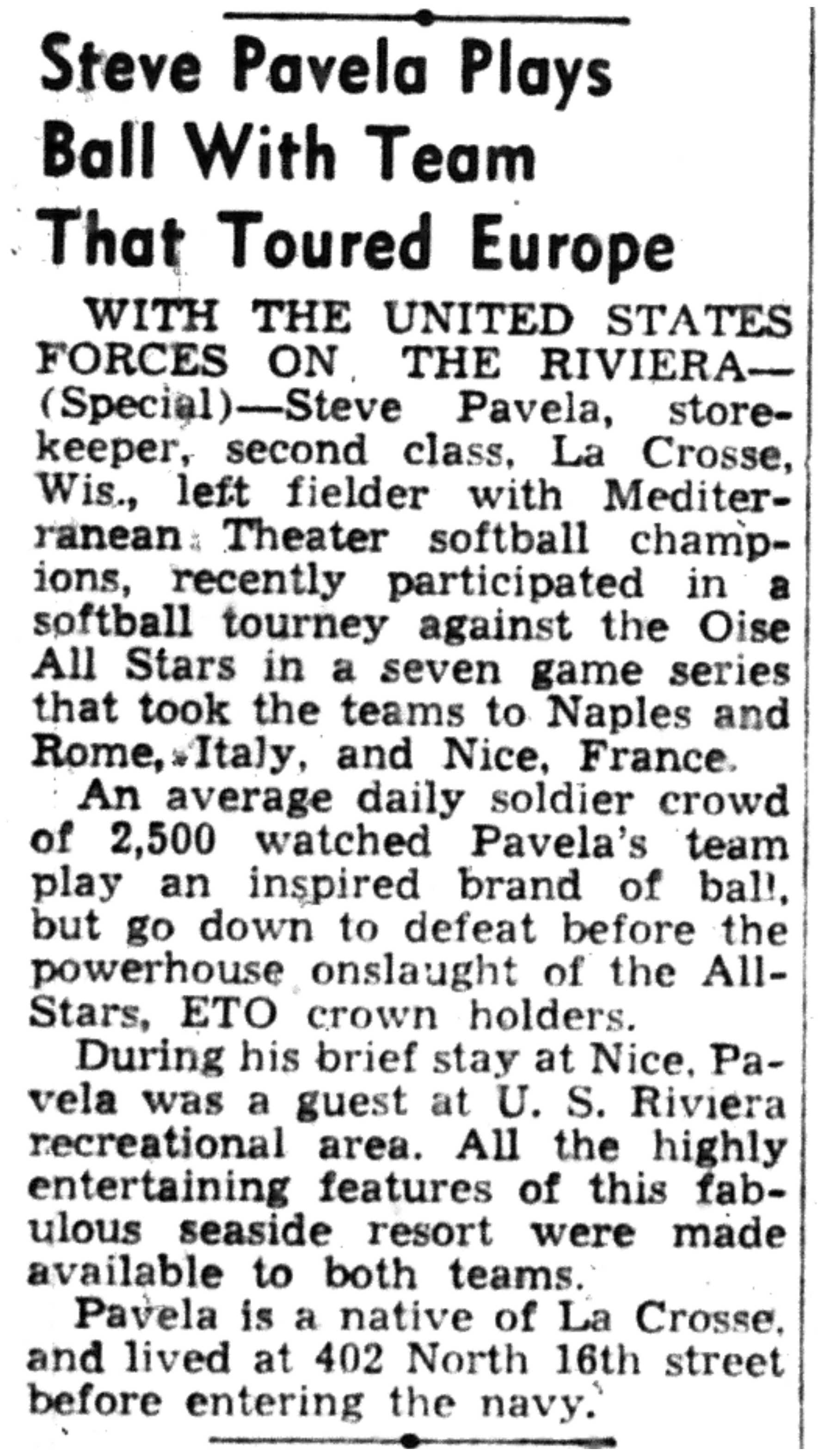 | 1945-11-8 | La Crosse Tribune p22 | |