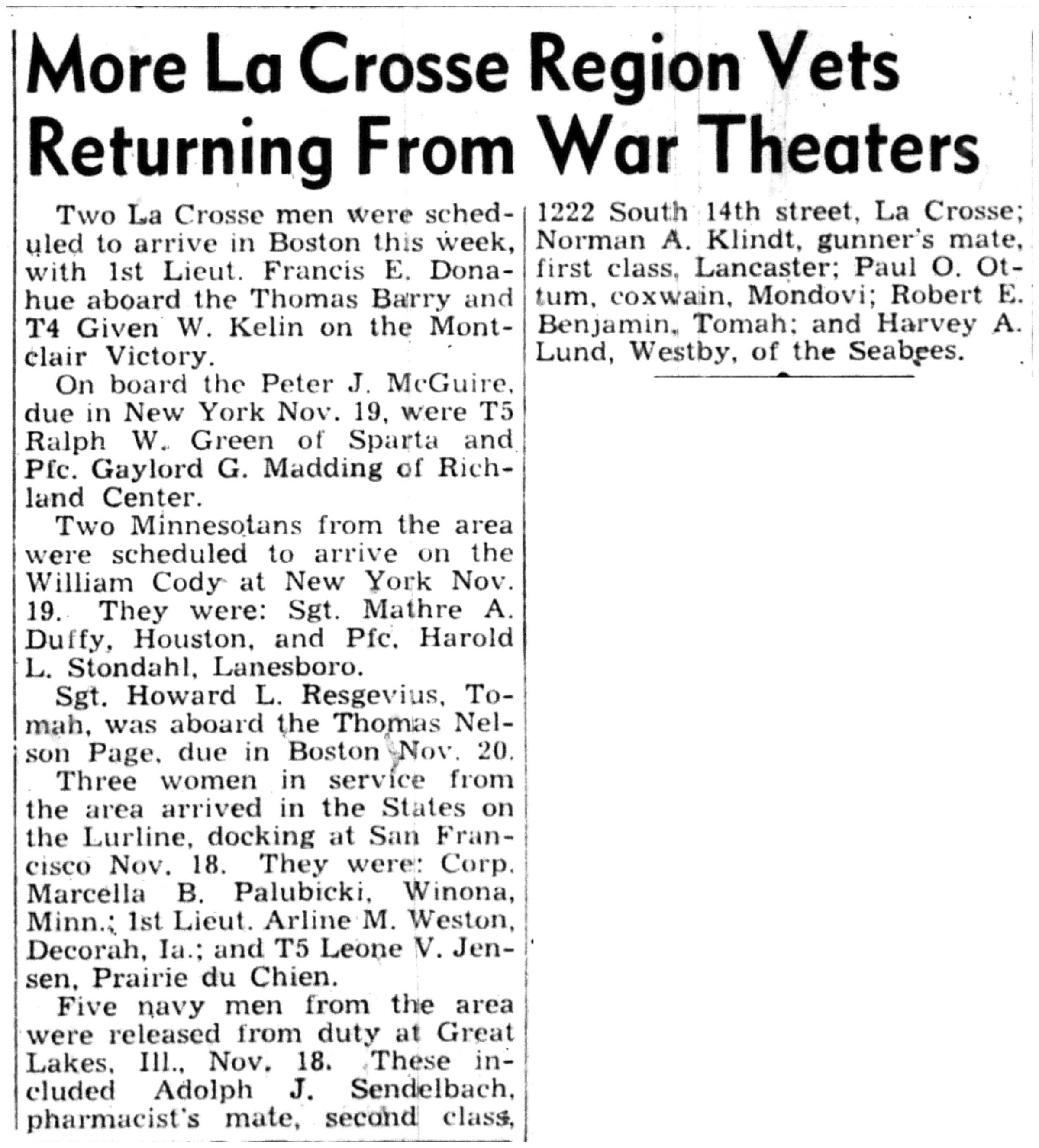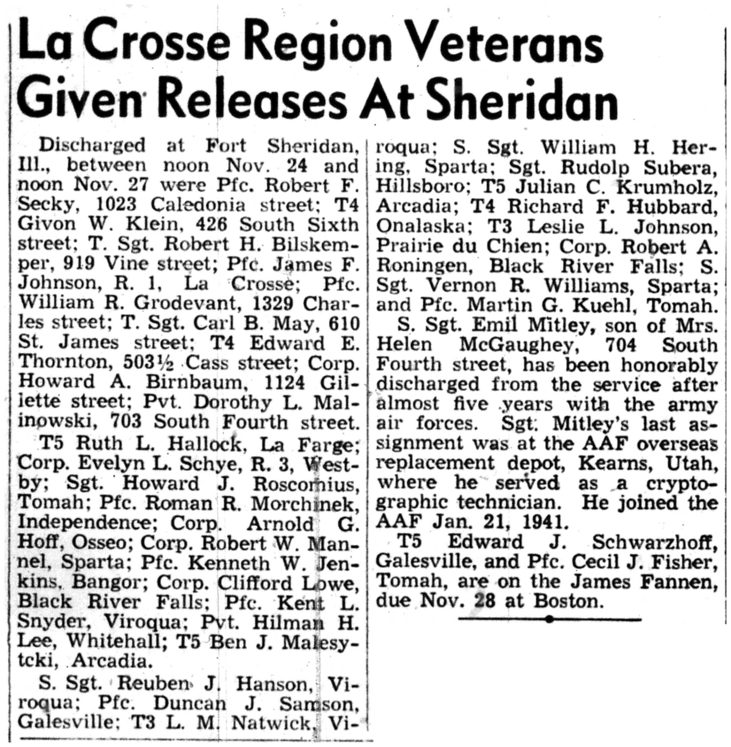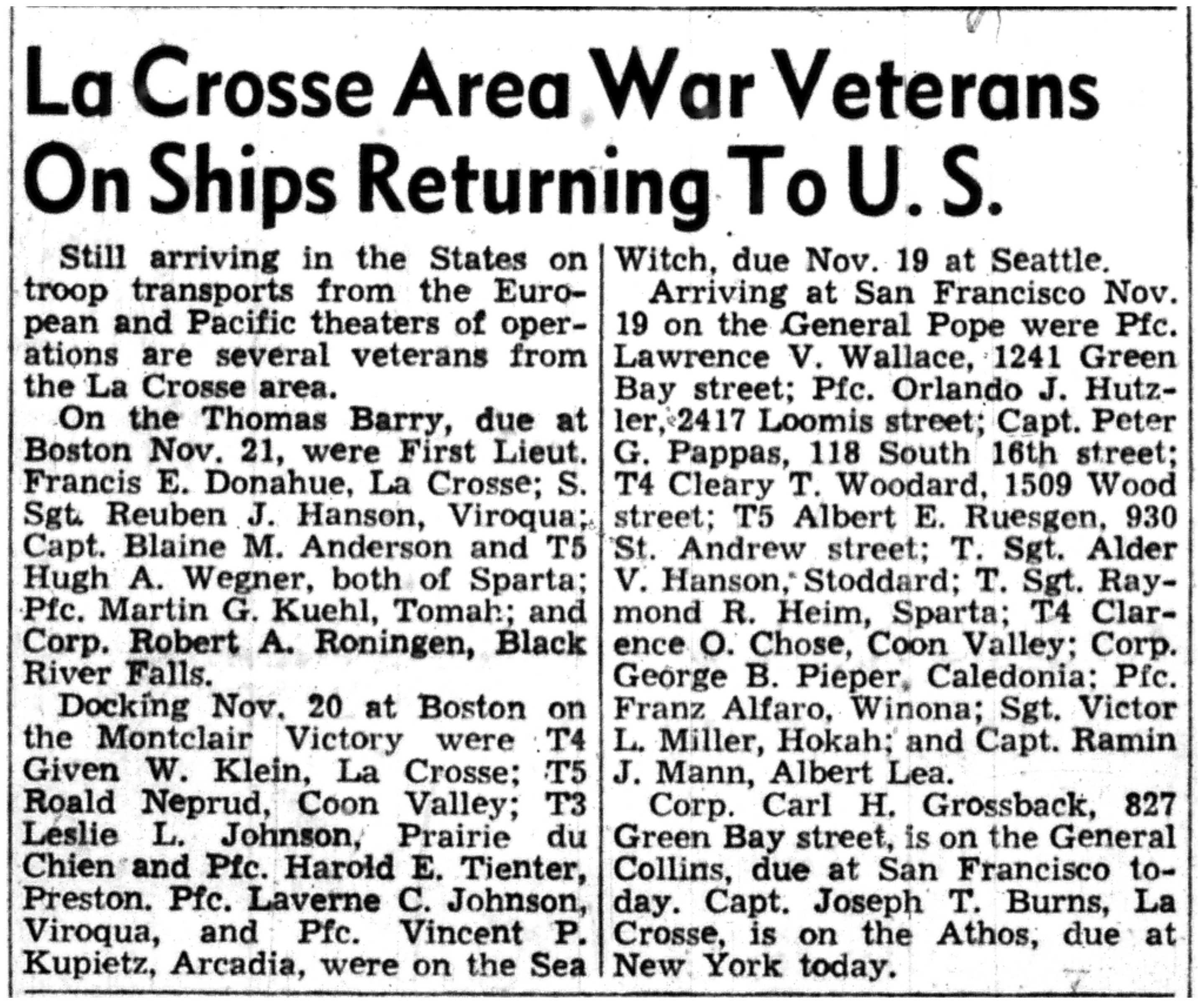| 1945-11-29 | La Crosse Tribune p5 |