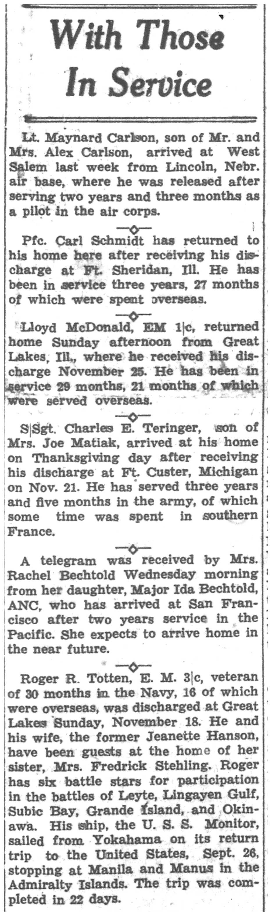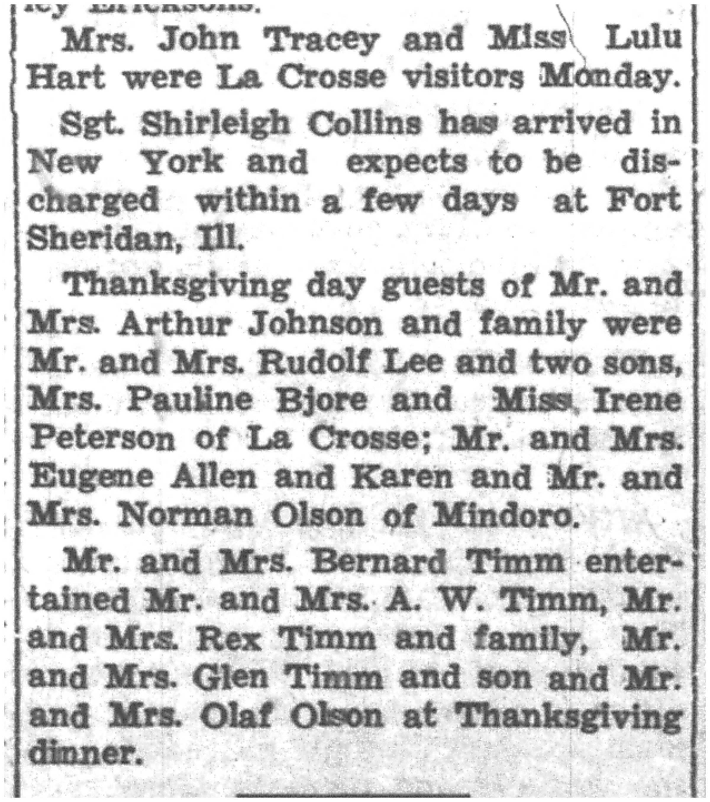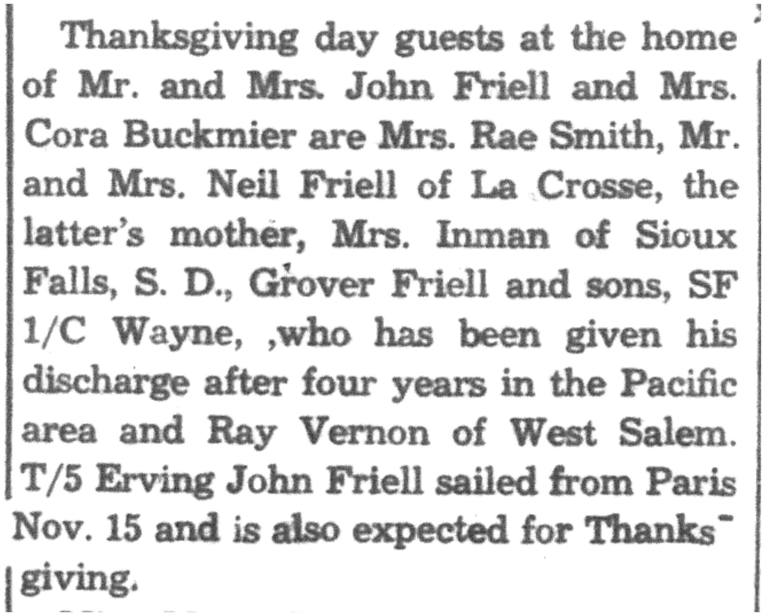 | 1945-11-22 | La Crosse County Record p8 | |