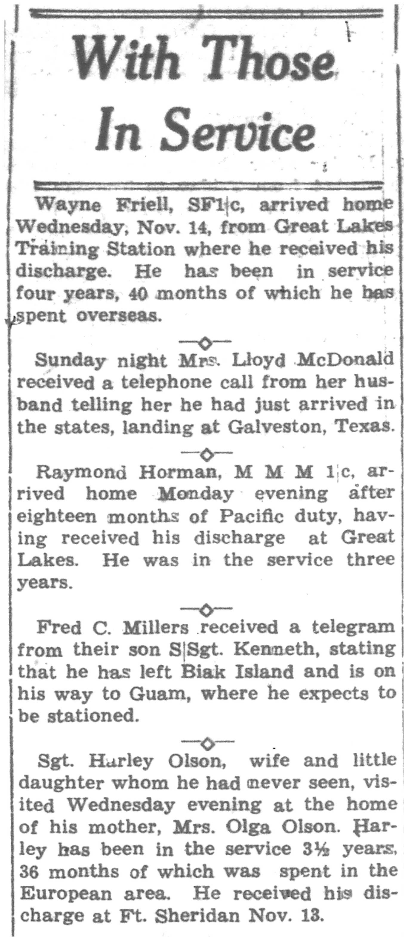 In the Service: November 1945