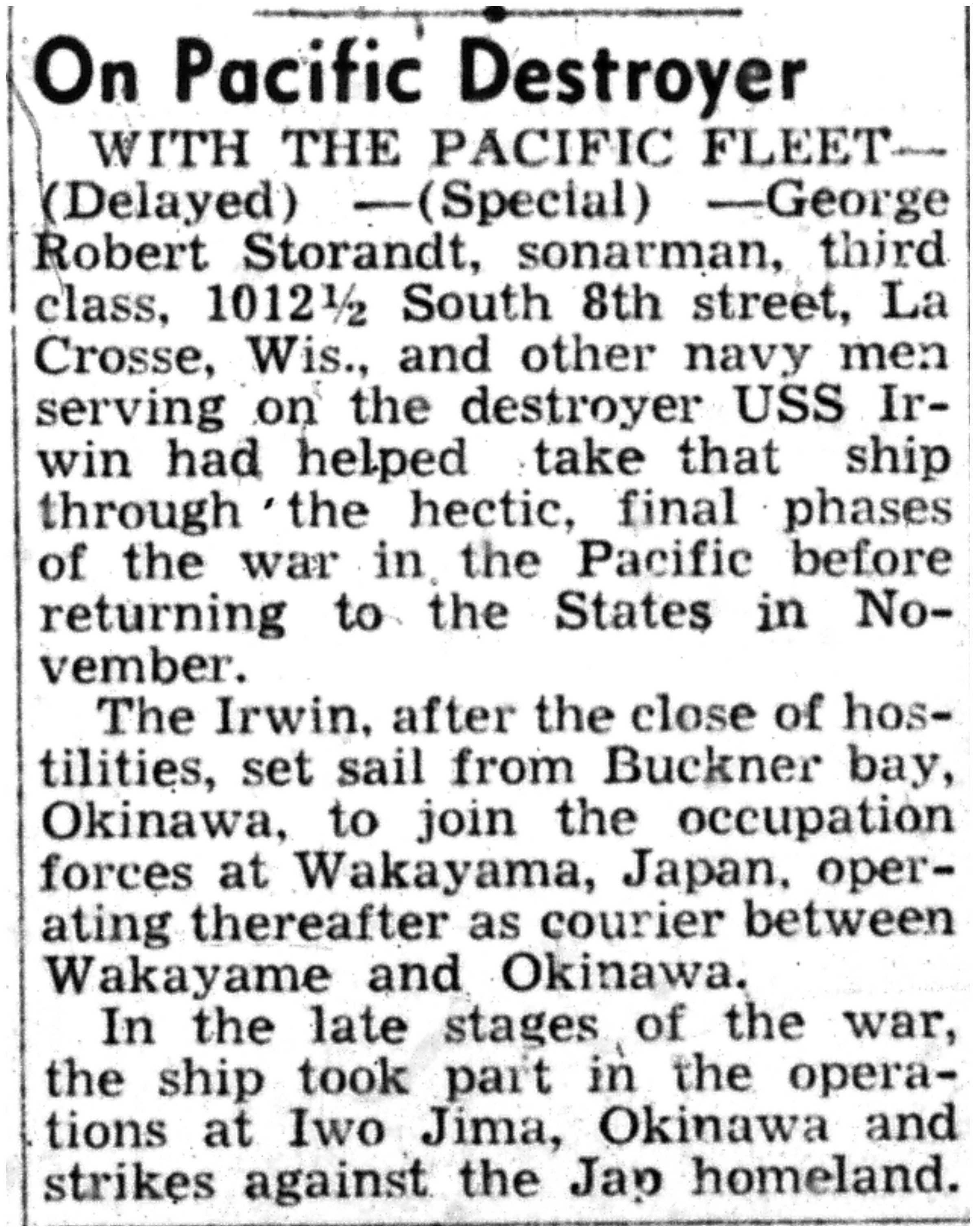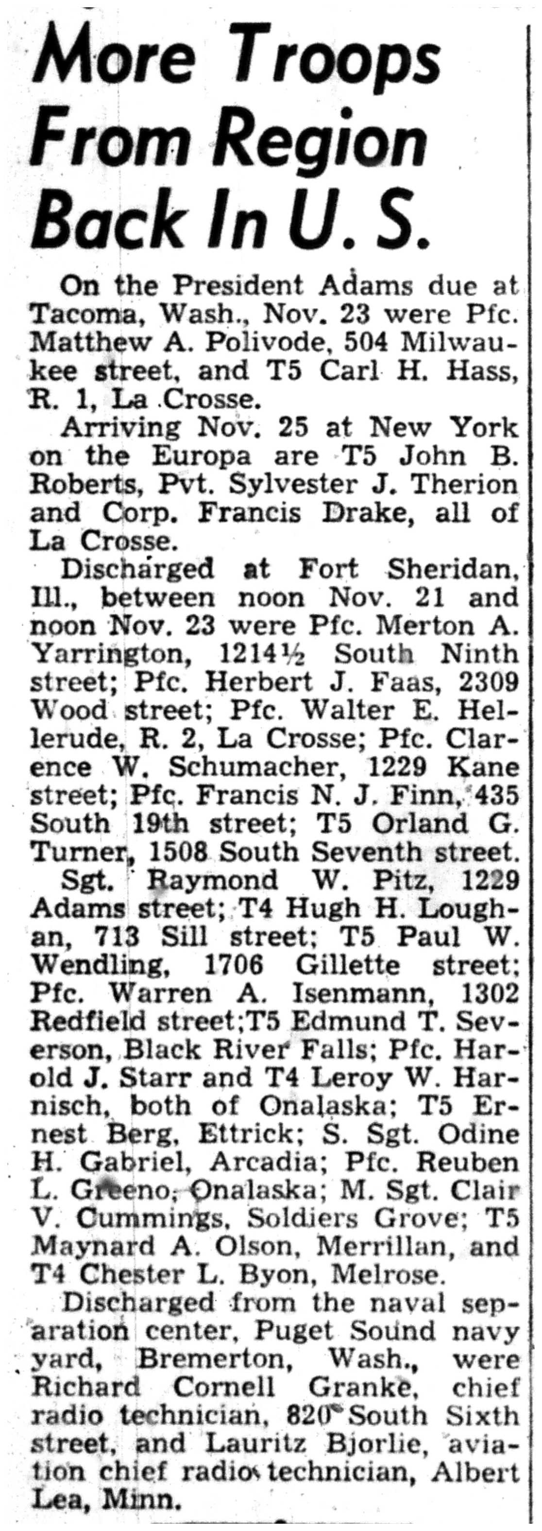 | 1945-11-23 | La Crosse Tribune p8 |