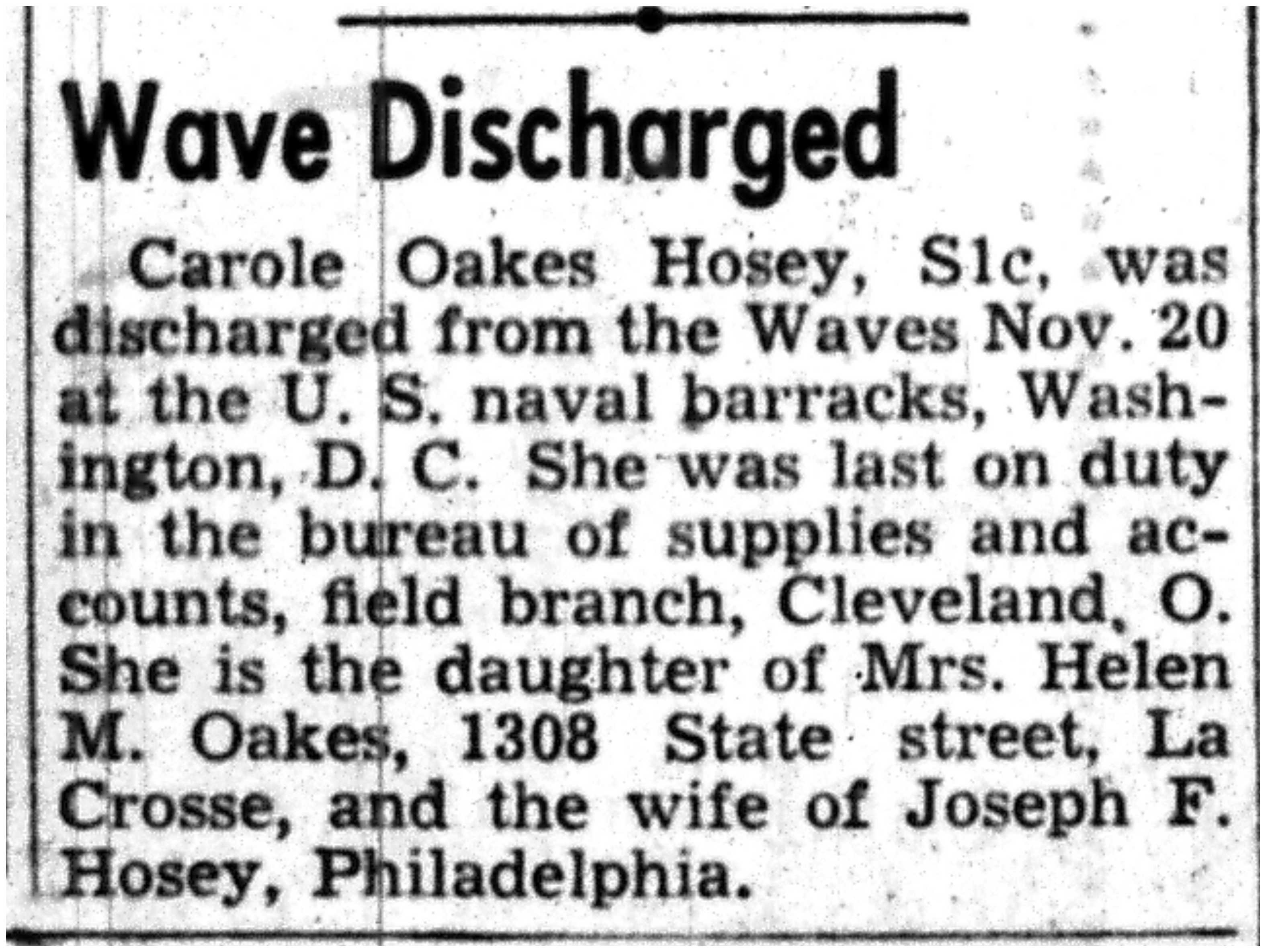 | 1945-11-30 | La Crosse Tribune p8 | |