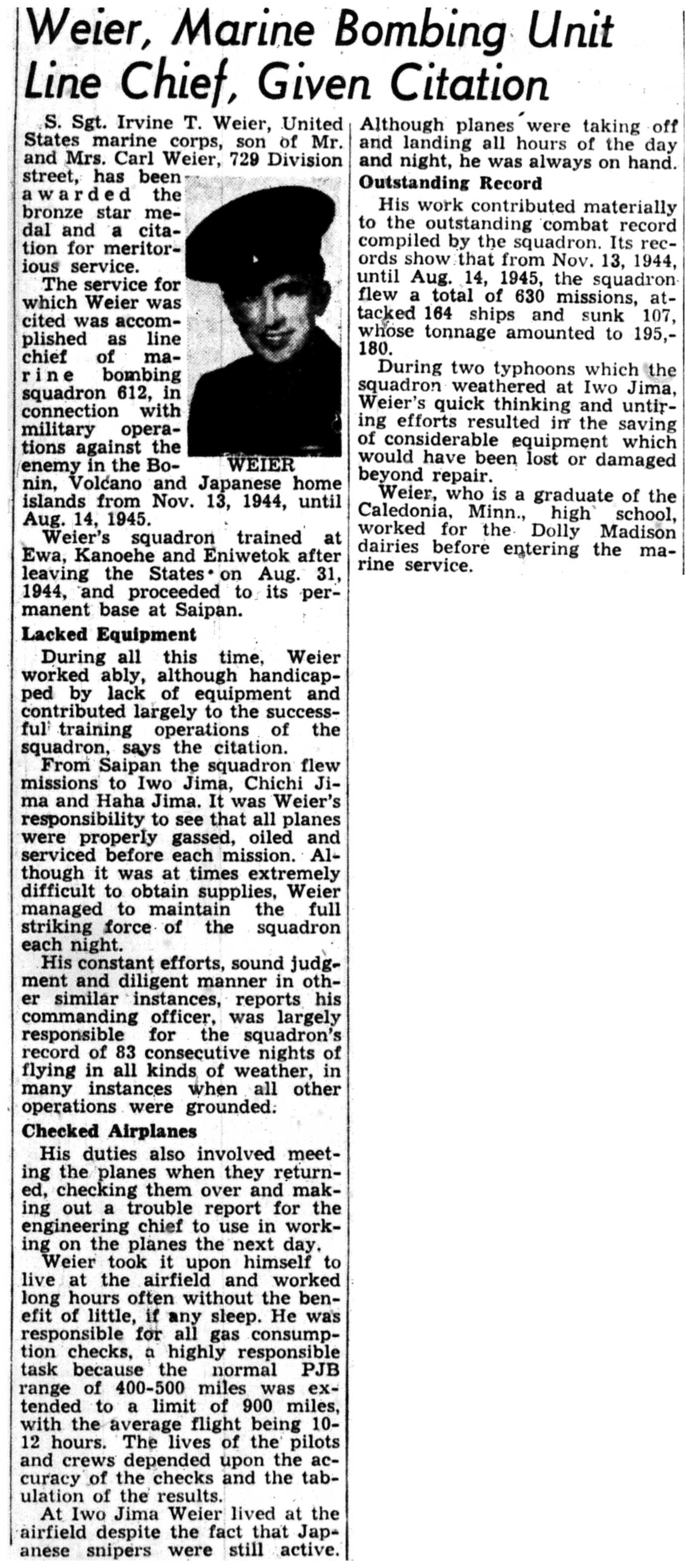 | 1945-11-1 | La Crosse Tribune p12 | |