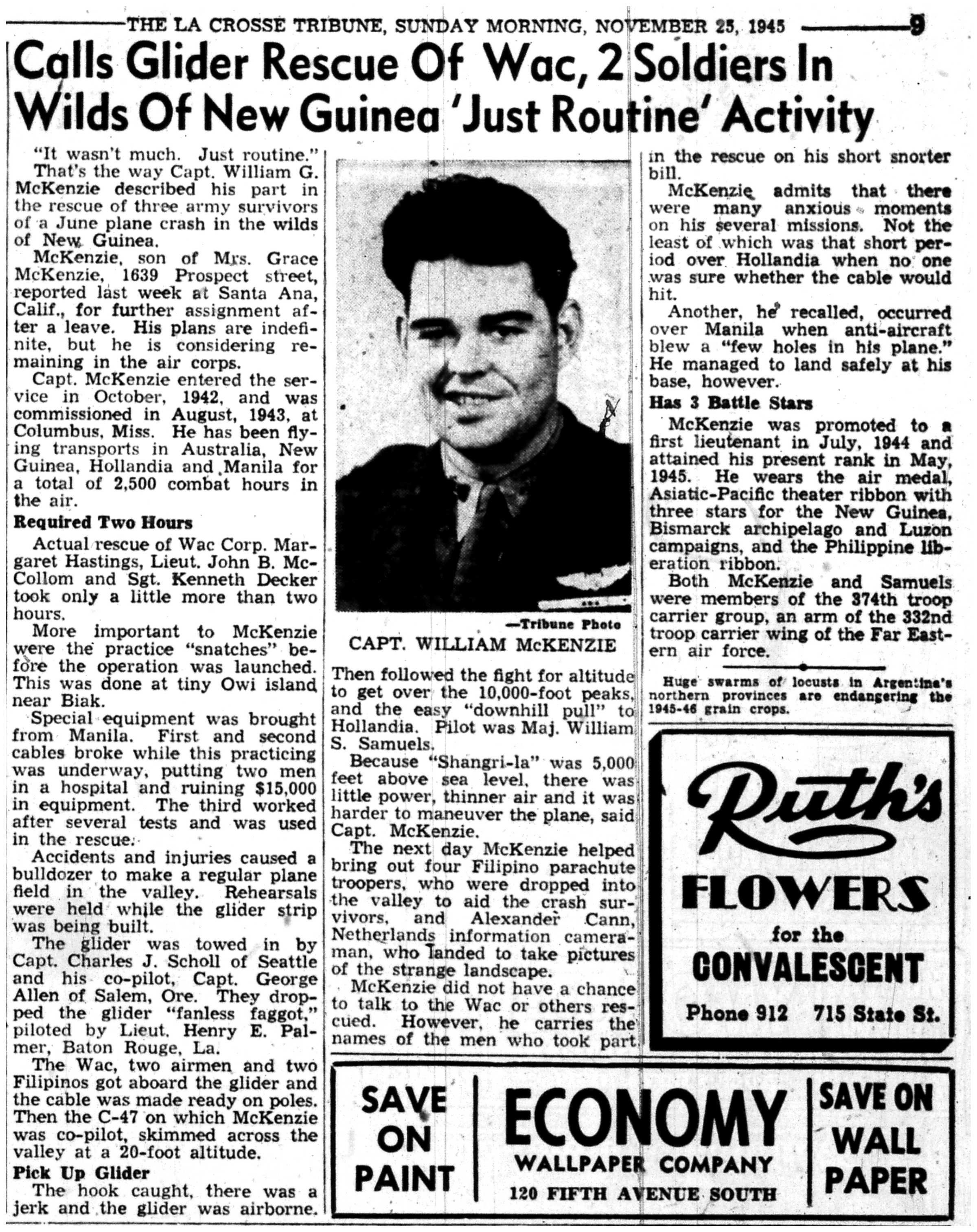 | 1945-11-25 | La Crosse Tribune p8 | |