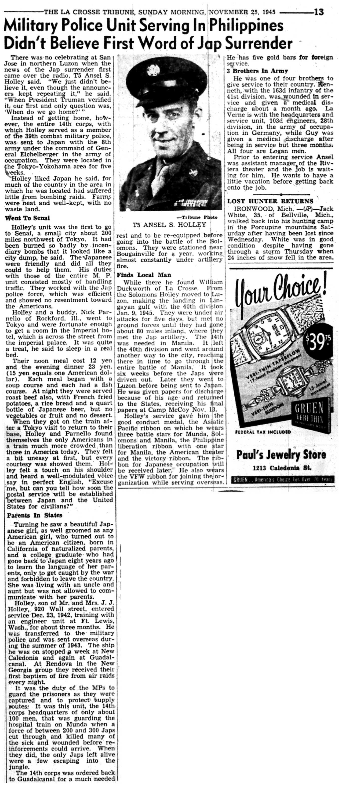 | 1945-11-8 | La Crosse Tribune p3 | |