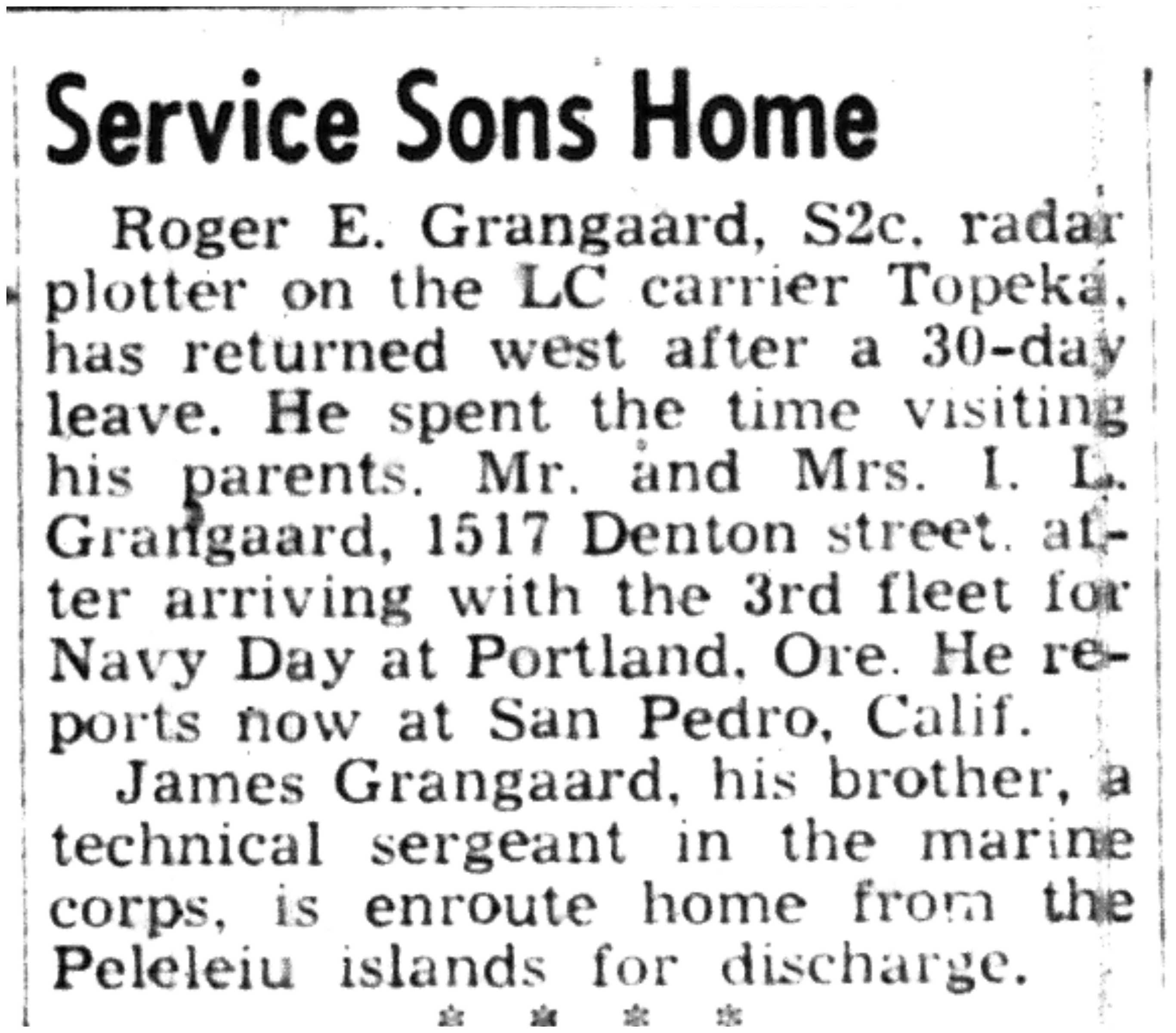 | 1945-11-8 | Non-Pareil Journal p4 | |