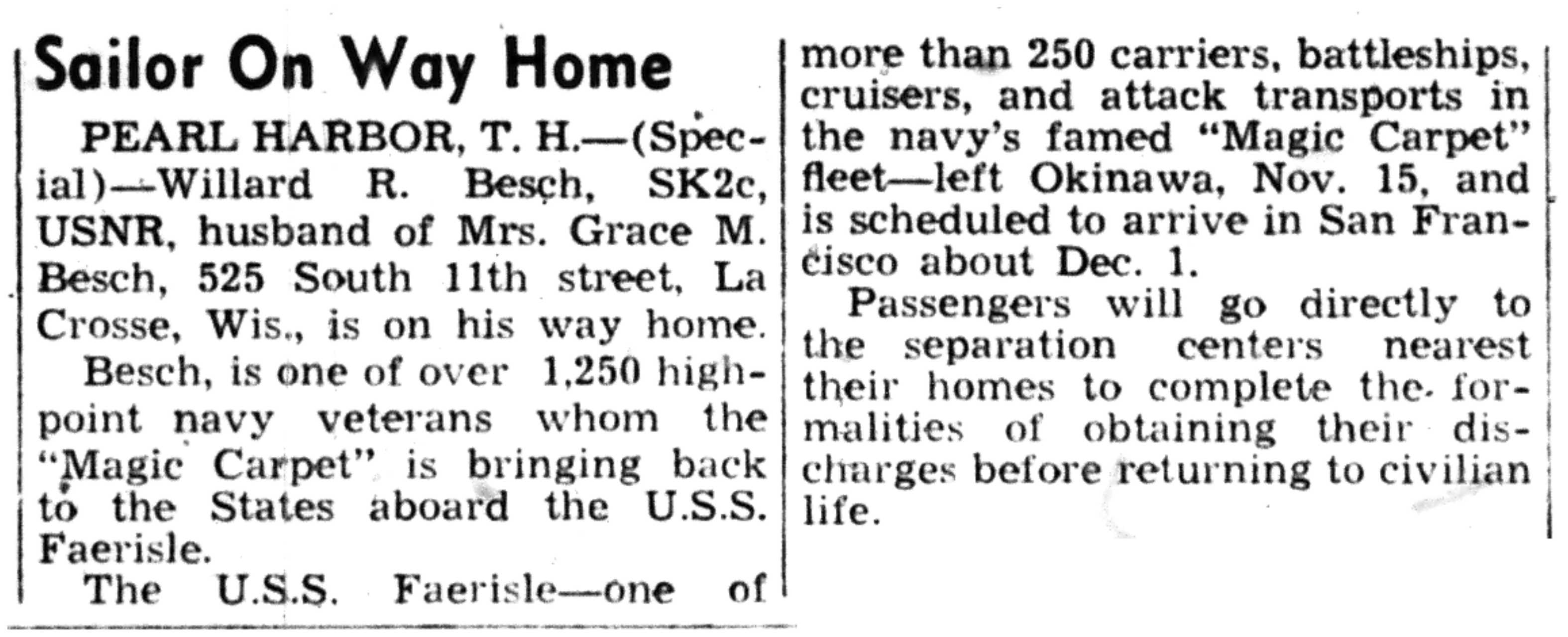 | 1945-11-27 | La Crosse Tribune p8 | |