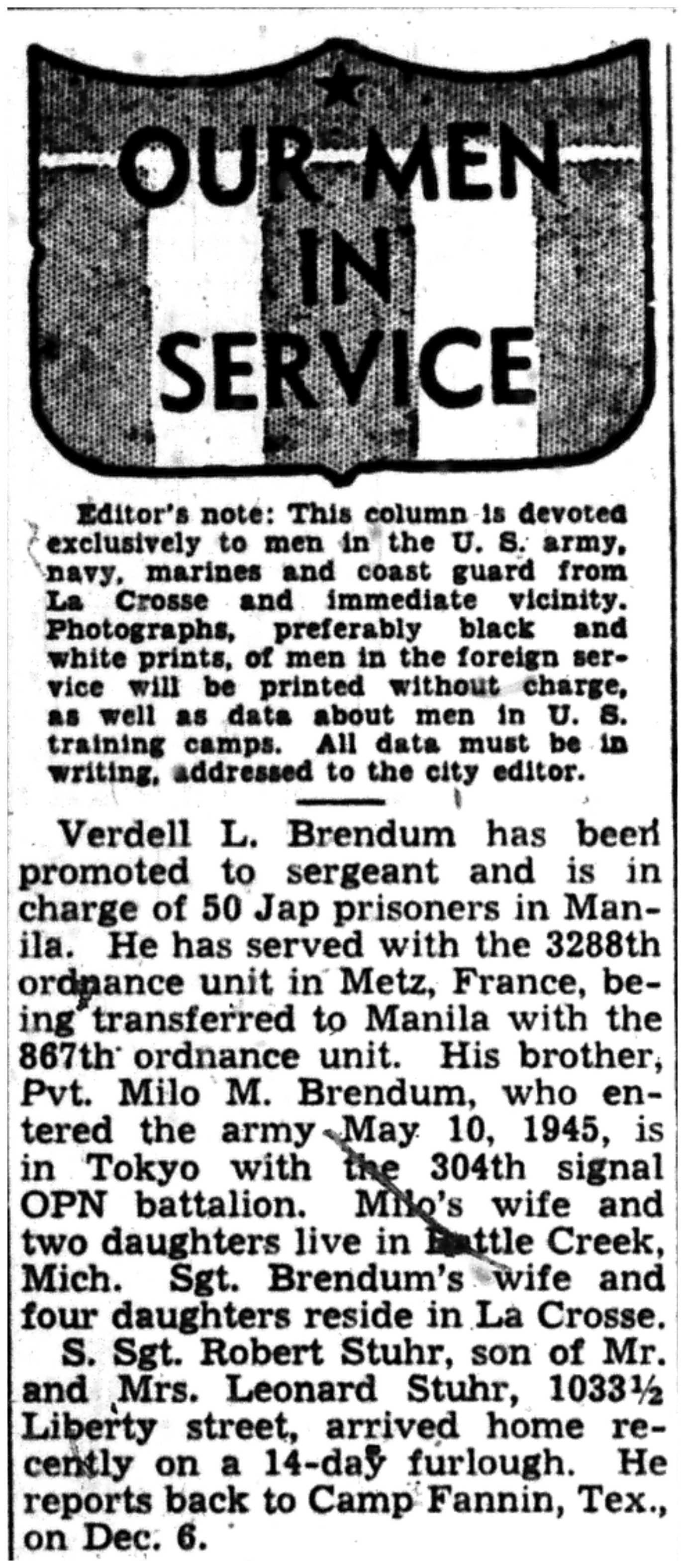 | 1945-11-25 | La Crosse Tribune p12 |